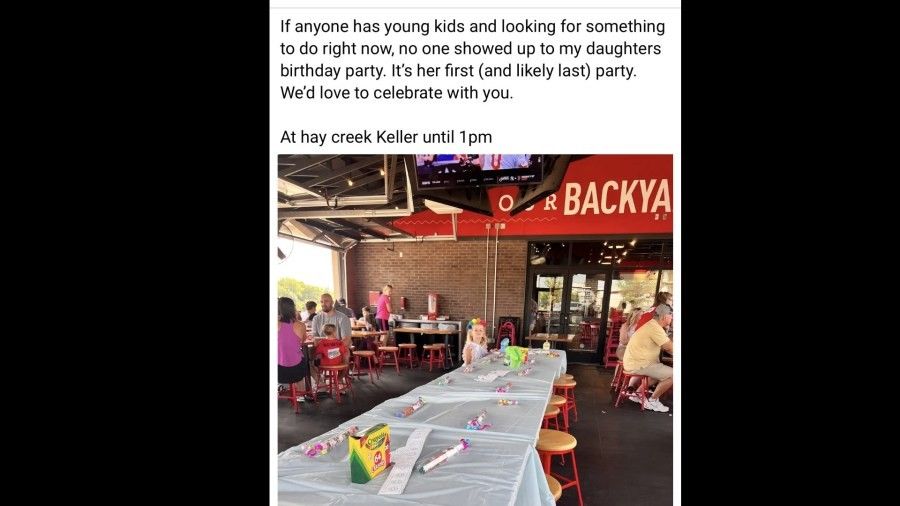 "If anyone has young kids and looking for something to do right now, no one showed up to my daughter's birthday party. It's her first (and likely last) party. We'd love to celebrate with you."