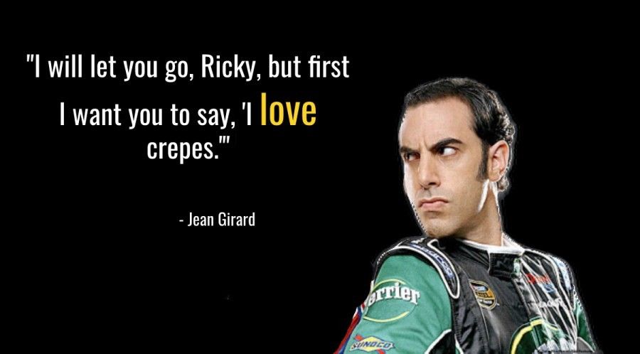 - “Aaaaah, Ricky Bobby! Now we shall dance and yes, it will be a slow jam.” — Jean Girard